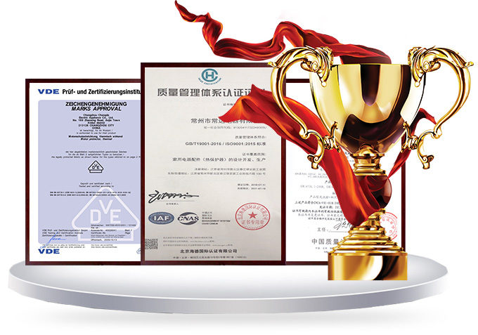 中國(guó)CQC認(rèn)證 、美國(guó)UL認(rèn)證 、 德國(guó)VDE認(rèn)證 、歐共 體CE認(rèn)證
